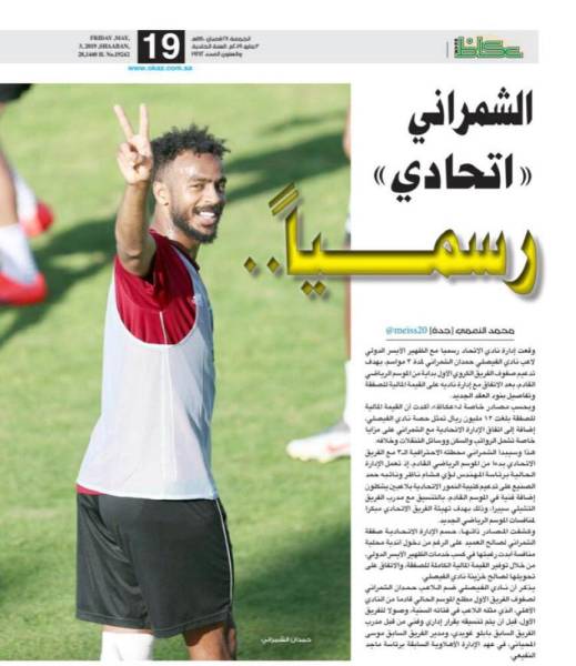 وكانت «عكاظ» قد نشرت في عددها يوم الجمعة الموافق 1440/8/28 تفاصيل الصفقة حيث أكدت مصادر خاصة لـ«عكاظ» أن العقد لمدة 3 مواسم.