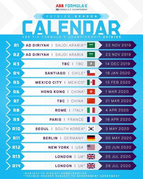 أعلن المجلس العالمي في الاتحاد الدولي للسيارات، الدرعية بداية انطلاق موسمه السادس من (أي بي بي - إف أي إي فورمولا إي) اعتباراً من شهر نوفمبر القادم بإقامة جولتين يومي 22 و23.