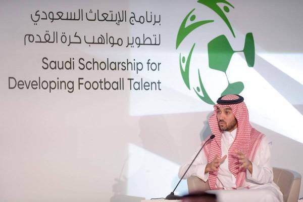 وأضاف: «اليوم نخطو خطوةً مهمة تجاه تعزيز إرثنا الكروي ووضع الأسس التي تزيد من فرص نجاح المنتخبات السعودية في المحافل الدولية، عن طريق إطلاق برنامج الابتعاث السعودي لتطوير مواهب كرة القدم، ويستهدف في أولى مراحله تنمية وتدريب نحو 40 موهبة سعودية وتزويدهم بالمهارات الفنية والحياتية التي تجعلهم قادرين على التكيف مع الثقافة الكروية الأوروبية، وكذلك أساليب التدريب المتبعة في كبرى الأندية العالمية وضمان البيئة المثالية التي تساعدهم على إخراج أفضل ما لديهم والتركيز على صقل مهاراتهم، كما يتيح البرنامج الفرصة للأندية الأوروبية لاستكشاف هذه المواهب السعودية، ودعوتها للمشاركة في الاختبارات الفنية تمهيداً لضمها».