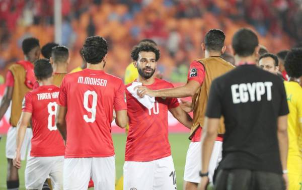 صلاح يتلقى التنهئة بعد الفوز على الكونغو.