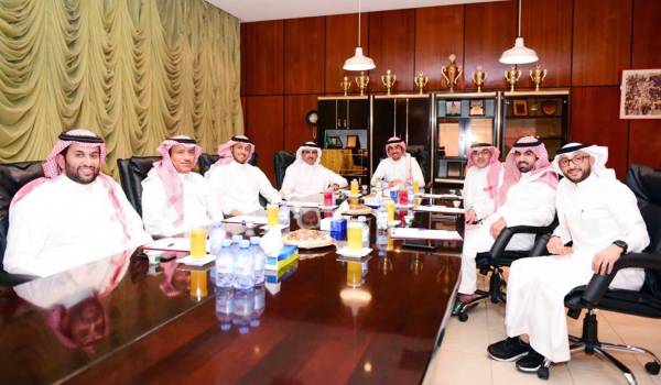 الزامل خلال ترؤسه اجتماع إدارة القادسية.
