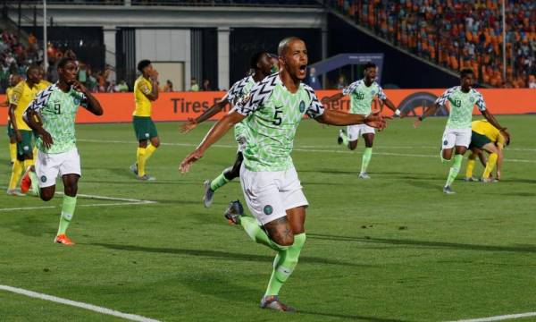 بلغت نيجيريا الدور نصف النهائي لبطولة كأس الأمم الأفريقية في كرة القدم، بفوزها 2-1 على جنوب أفريقيا بهدف في الدقائق الأخيرة من مباراتهما (الأربعاء) على استاد القاهرة الدولي الذي شهد الأسبوع الماضي إقصاء «بافانا بافانا» للمنتخب المصري المضيف.