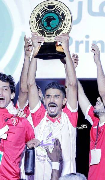 محمد العتيبي يرفع كأس دوري محمد بن سلمان.