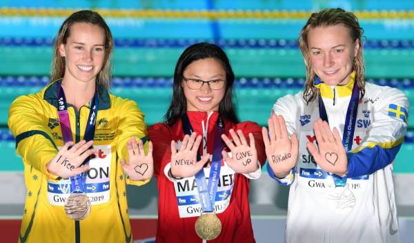 ضربت 3 بطلات في لعبة السباحة أروع الأمثلة في تضامنهن مع زميلتهن اليابانية «إيكي» التي تصارع مرض السرطان، حيث قادت البطلة السويدية سارة سيوستروم لفتة تضامن مع نظيرتها اليابانية ريكاكو إيكي التي تصارع مرض السرطان، بعد نهائي سباق 100م فراشة الذي حلت فيه ثانية خلف الكندية مارغريت ماكنيل وأمام الأسترالية إيما ماكيون في بطولة العالم للسباحة المقامة في غوانغجو الكورية. ووقفت سيوستروم بجانب ماكنيل وماكيون على منصة التتويج مع رسالة كتبتها السباحات الـ3 على كفوفهن، دعما لمنافستهن إيكي الغائبة عن بطولة العالم بسبب صراعها مع المرض، في بادرة أسعدت الجميع، وكتبت البطلات الـ3 «لا تستسلمي أبدا ريكاكو إيكي»، ثم قالت سيوستروم بعدها «آمل حقا أن تتغلب على هذا السرطان. إنها مقاتلة حقيقية والفائزة الحقيقية». وتعتبر إيكي مرشحة بقوة للمنافسة على الذهب في أولمبياد طوكيو 2020 في سباقي 100م فراشة، و200م حرة، إذ كشفت وسائل إعلام يابانية أن بنك نخاع العظام الرئيسي في البلاد تلقى طلبات تبرع لا تحصى بعد أن كشفت إيكي عن حالتها.