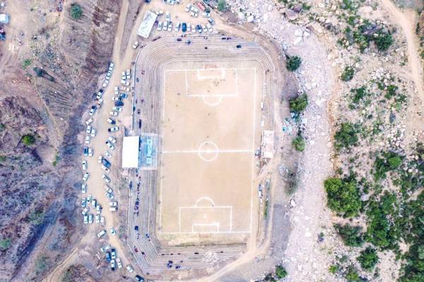 صورة جوية للملعب المنحوت بمحافظة الداير.