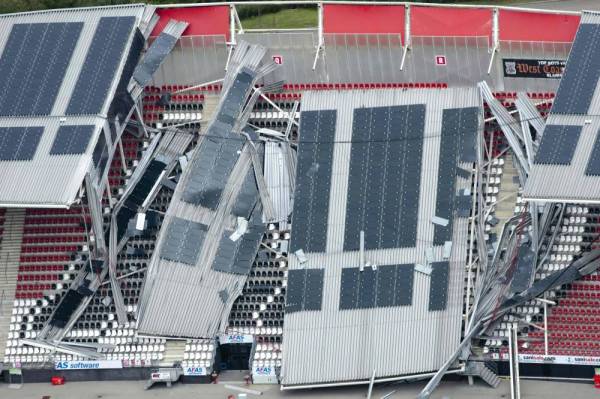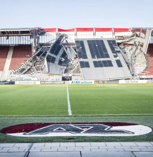 أدت الرياح العاتية إلى انهيار جزء من مدرجات ملعب نادي ألكمار الهولندي لكرة القدم، مع تأكيد مسؤولين أنه كان خاليا تماما لدى حصول الحادثة أمس الأول. وأظهرت الصور انهيار جزء من مدرجات الملعب الذي يتسع لنحو 17 ألف شخص، والذي أنشئ في المدينة الهولندية الشمالية قبل 13 عاما.