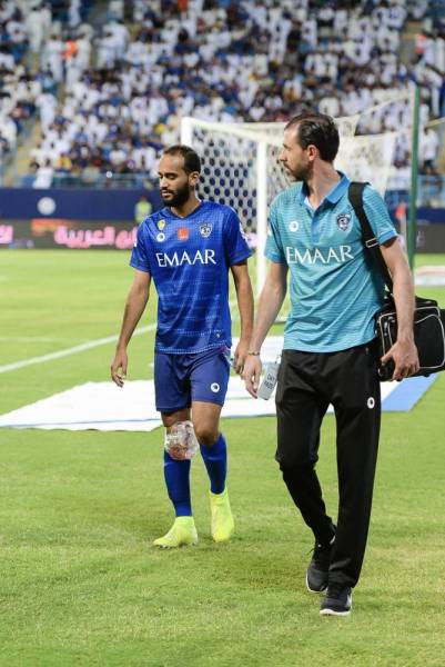 عبدالله عطيف لحظة خروجه من الملعب متأثرا بالإصابة.