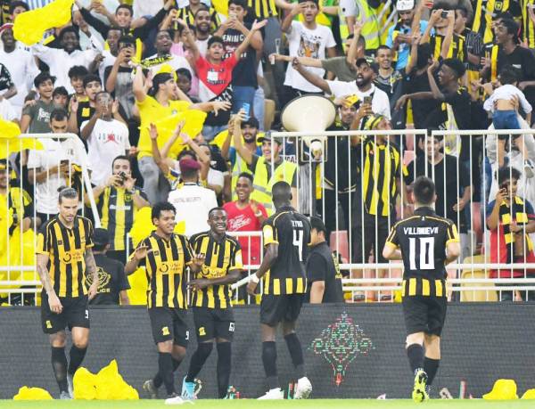 فرحة اتحادية بالفوز على الرائد أمس في الدوري.
