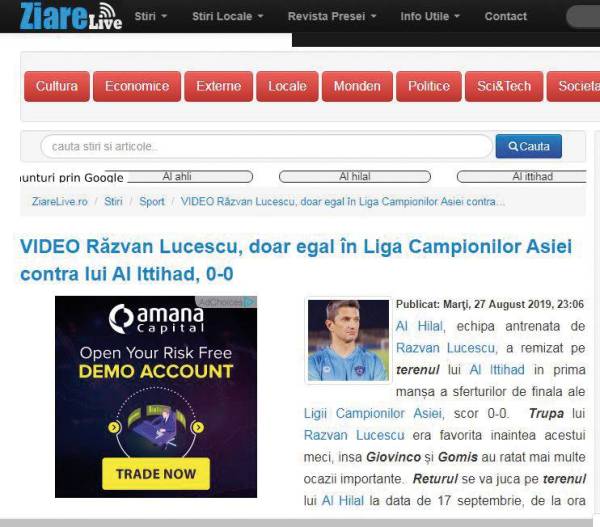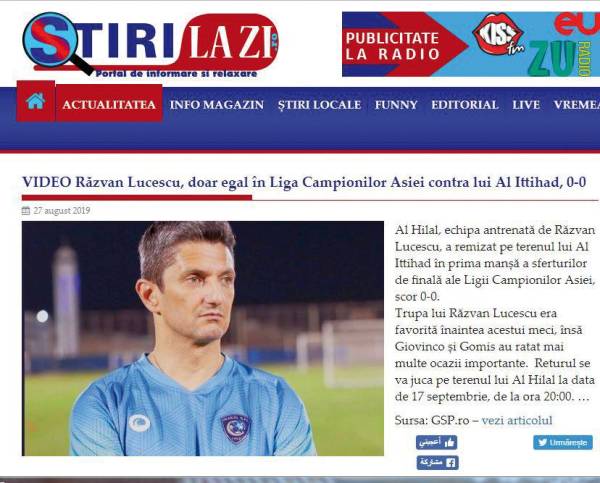 جدد عدد من الصحف الرومانية انتقادهم لـ«ابن جلدتهم» المدير الفني لفريق الهلال رازفان عقب تعادل فريقه سلبياً مع الاتحاد ضمن ذهاب دور الـ8 من بطولة دوري أبطال آسيا. وأوضحت الصحف أنه للمرة الثانية على التوالي يظهر الفريق بالصورة الفنية العادية جداً، إذ كانت الأولى أمام فريق أبها ضمن افتتاحية الدوري، والثانية أمس الأول أمام الاتحاد رغم أن الهلال كان قريبا جداً من تحقيق الفوز.وقالت صحف «gsp ،ziarelive ،stirilazi» : خلال مواجهة الأهلي في دور الـ16 من البطولة الآسيوية كان الفريق واللاعبون بشكل خاص مميزين سواء ذهاباً أو إياباً، لكن خلال مواجهتي أبها والاتحاد كان لاعبو الأزرق غائبين عن المستوى الفني، إضافة إلى أن تكتيك المدرب رازفان لم يظهر بتاتاً، وكأنه لأول مرة يقود فريقا.