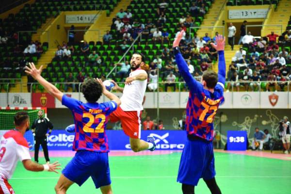 يد الوحدة في مباراة أمس أمام برشلونة.