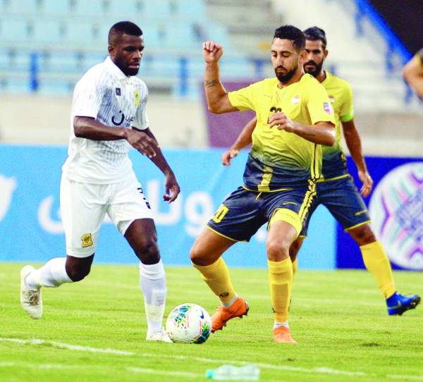 منصور الحربي في محاولة اختراق دفاع العهد.