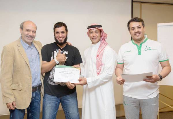رئيس اتحاد المبارزة أحمد الصبان يسلم الشهادات لأحد المشاركين في دورة ترفيع وصقل الحكام.