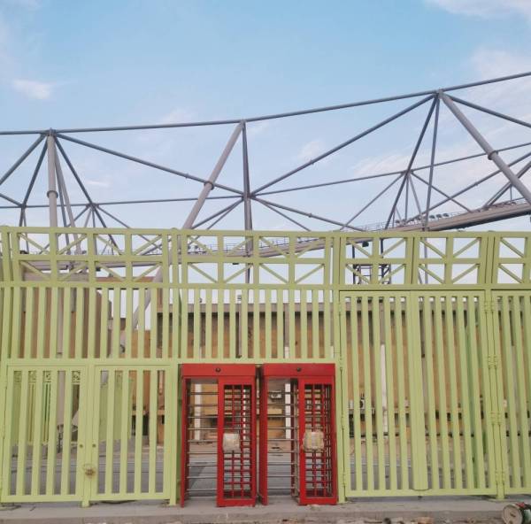 ويتسع الملعب لـ30 ألف مشجع في مختلف الدرجات، كما يجري العمل على تركيب البوابات الإلكترونية في الجهات المخصصة لدخول الجماهير الرياضية للملعب.