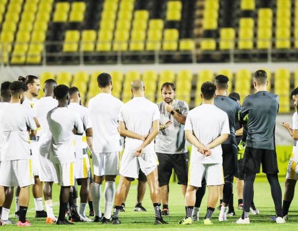 سييرا في حديث مع اللاعبين قبل تدريب الأمس.
