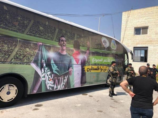 وحظيت بعثة المنتخب السعودي لكرة القدم، باستقبال رسمي وشعبي كبير عند وصولها إلى مدينة رام الله.