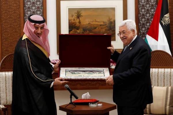 واستقبل الرئيس الفلسطيني محمود عباس رئيس الاتحاد السعودي لكرة القدم ياسر المسحل.