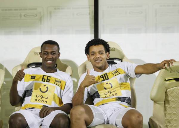 رومارينهو وعبدالحميد قبل انطلاق تدريب الأمس.