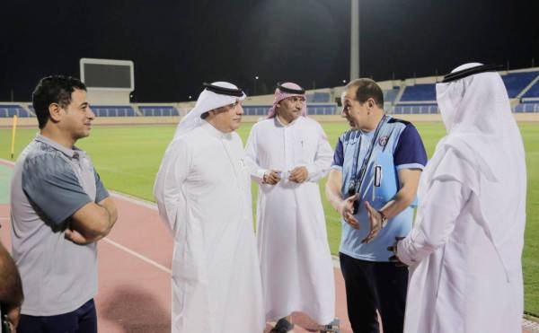 الغدير يستمع للجهاز الفني خلال زيارته للنادي.