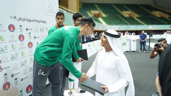 توج رئيس الاتحاد العربي والإماراتي للمبارزة الشيخ سالم القاسمي، ورئيس الاتحاد السعودي للمبارزة أحمد الصبان، الفائزين في سلاحي السايبر (الرجال) والابيه (السيدات)، ضمن منافسات بطولة الجولة الآسيوية للمبارزة تحت 17 عاماً، التي انطلقت اليوم (الخميس) في الصالة الخضراء بمجمع الأمير فيصل بن فهد الأولمبي في الرياض.