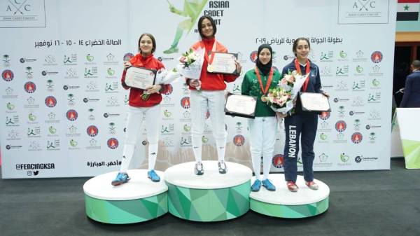 وحصلت الأردنية دينا منسي على الميدالية الذهبية في سلاح الابيه، وحققت زميلتها شهد كلوب الميدالية الفضية، فيما حصلت ندى عابد لاعبة المنتخب السعودي على المركز الثالث والميدالية البرونزية.