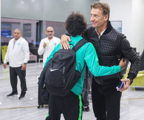 رينارد مودعا لاعب الهلال ياسر الشهراني عقب مغادرته معسكر الأخضر.