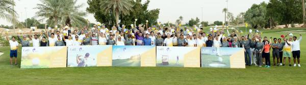 رئيس اتحاد الجولف ياسر الرميان يتوسط في صورة جماعية مع الفائزين والمتابعين لفعاليات البطولة التي أقيمت بالرياض.