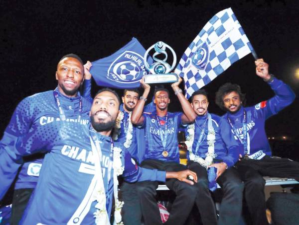 عاش الهلاليون يوم أمس (الإثنين) يوماً استثنائياً من خلال الاحتفالية الخاصة بأبطال دوري كأس آسيا الذي حصده الفريق الكروي بكل جدارة واستحقاق من أمام فريق أوراوا الياباني، بعد الفوز ذهاباً 1/0، وإياباً 2/0، وتأهل للمشاركة بطولة أندية العالم القادمة، إذ تم الاحتفاء بممثل الوطن الفريق الهلالي في مقر فعاليات موسم الدرعية، بحضور رئيس هيئة الرياضة الأمير عبدالعزيز بن تركي الفيصل، وعضو الشرف الداعم الأمير الوليد بن طلال، ورؤساء نادي الهلال السابقين الأمير عبدالله بن مساعد، والأميرعبدالرحمن بن مساعد، والأمير نواف بن سعد، ووكيل رئيس الهيئة العامة للرياضة والإعلام الدكتور رجاء الله السلمي. وجاءت الاحتفالية وسط أجواء عالمية وأهازيج من قبل الجماهير الهلالية التي تواجدت بكثافة في الدرعية، وكانت بعثة الزعيم حطت رحالها في مطار الملك خالد الدولي في الرياض الساعة 6:30 مساء، وتوجهت مباشرة لمقر فعاليات موسم الدرعية.