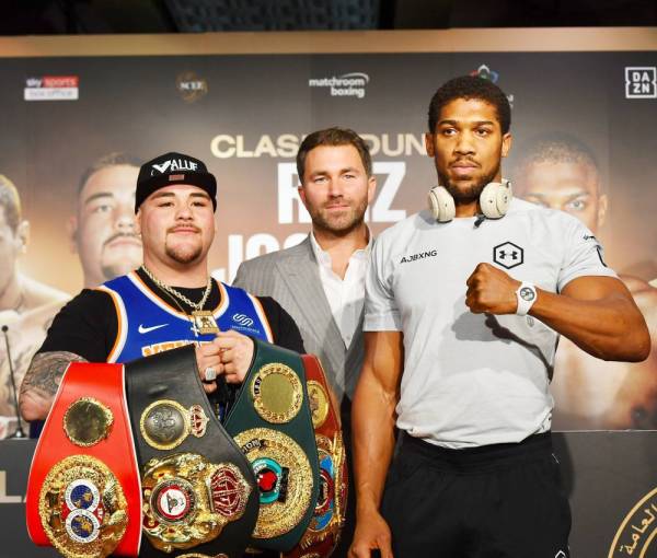 فيما قال الأمريكي المكسيكي آندي رويز خلال المؤتمر الصحفي: «تدربت كثيراً لليلة السبت المنتظرة، لقد صنعت التاريخ في يونيو من العام الحالي، وأنا هنا لكتابة تاريخ جديد يوم الـ7 من ديسمبر الجاري، أعلم أن جوشوا مستعد تماماً وخسر الكثير من الوزن بهدف الانتصار، ولكنني مستعد له بشكل كامل، تأكدوا أنني لن أترك هذه الأحزمة الجميلة تذهب إلى خصمي، ومن المستحيل أن أتخلى عن حلمي الذي حققته، سأفوز مجدداً هنا في المملكة، وهي مكاني المثالي لإعادة أمجادي الماضية، والبقاء بطلاً للعالم في الملاكمة».