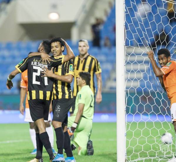 فرحة لاعبي الاتحاد بالتأهل لدور ثمن النهائي.