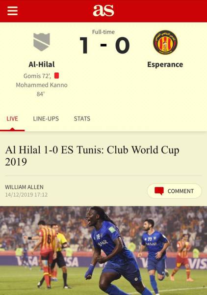 وركزت هيئة الإذاعة البريطانية في لندن على فوز الهلال وتألق المهاجم الفرنسي غوميز، الذي شارك في الشوط الثاني ليسجل هدفاً رائعاً، ويؤهل فريقه إلى نصف نهائي البطولة.