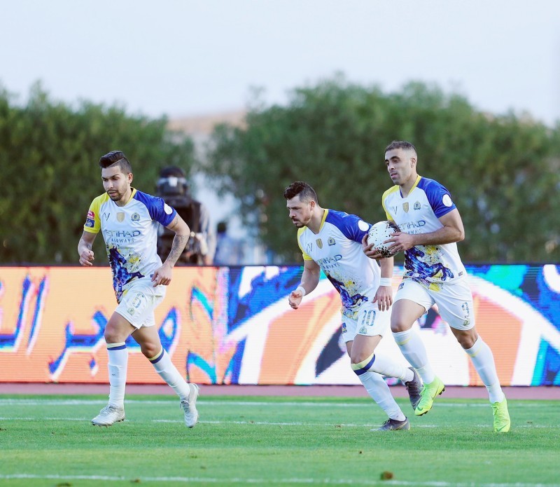 حافظ فريق النصر على صدارته بعد أن قلب تأخره بهدف أمام مضيفه الفيحاء لفوز برباعية لهدف، في اللقاء الذي جمعهما عصر أمس (السبت)، على استاد مدينة المجمعة الرياضية، ضمن لقاءات الجولة الـ13 من دوري كأس الأمير محمد بن سلمان للمحترفين. أحرز أهداف النصر عبدالرزاق حمدالله «هاتريك» (من ركلة جزاء 73، 88، 90+1)، وسلطان الغنام (د: 81)، فيما جاء هدف الفيحاء عن طريق مهاجمه روني فرنانديز (د: 11). وشهد اللقاء 3 حالات طرد مباشرة، اثنتان للاعبي الفيحاء صامويل اوسو (د: 43)، وادملسون دي باروس (د: 70)، وواحدة لحارس النصر براد جونز (د: 65)، كما حصل أحد مساعدي مدرب النصر على بطاقة حمراء كذلك. وبهذه النتيجة حافظ النصر على صدارته، ليصل للنقطة 29، فيما تجمد رصيد الفيحاء عند النقطة 16، في المركز الـ9.