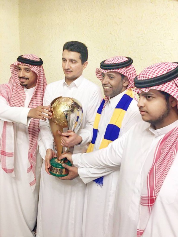 وأضاف: بكل أمانة هذا الرجل مكسب كبير للنصر وبصماته واضحة مع النادي منذ الموسم الماضي وتقديم الكأس هدية له هو تعبير منا كإدارة لما قدمه لناديه.