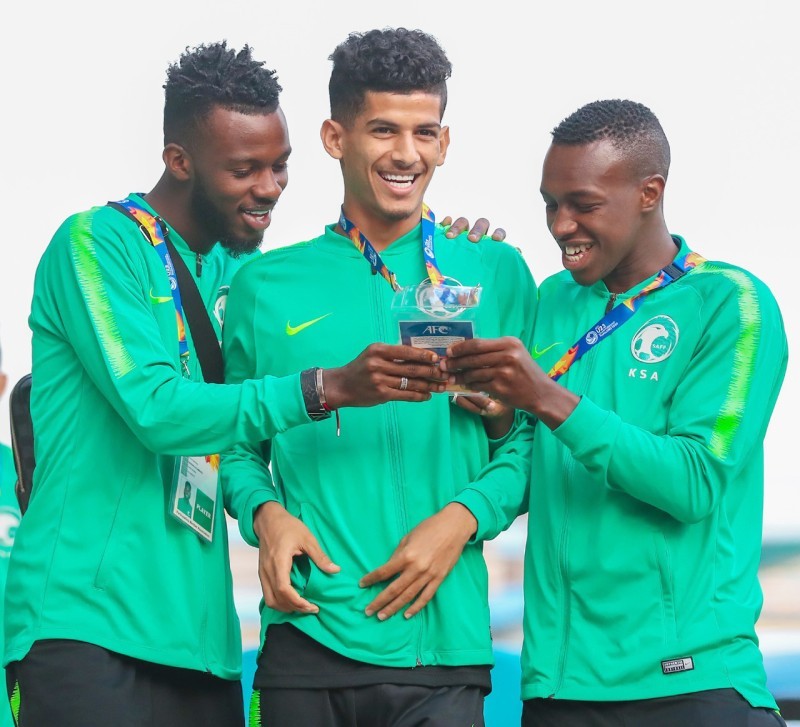 ثلاثي المنتخب السعودي سعود عبدالحميد وعبدالبسط هندي ومهند تمبكتي.