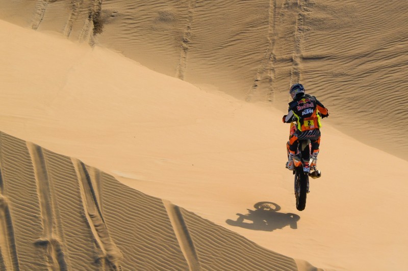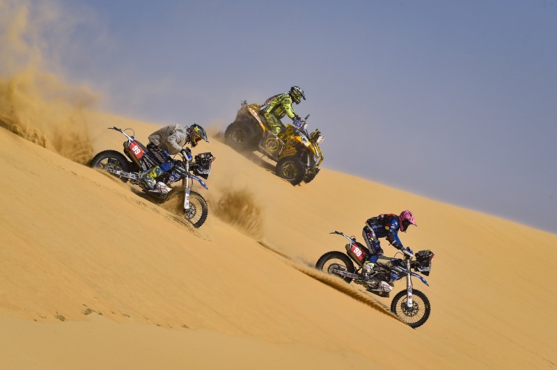 وفي فئة الدراجات النارية فاز التشيلي بابلو كينتانيا بالمرحلة الخاصة، وجاء النمساوي ماتياس فالكنر ثانياً بفارق 9 ثوانٍ، فيما حلَّ الأرجنتيني لوسيانو بينافيديس ثالثاً، وفي الترتيب العام واصل الأمريكي ريكي برابيك الحفاظ على الصدارة بفارق يقترب من 14 دقيقة عن كينتانيا الثاني، بينما يأتي الأسترالي توبي برايس ثالثاً.