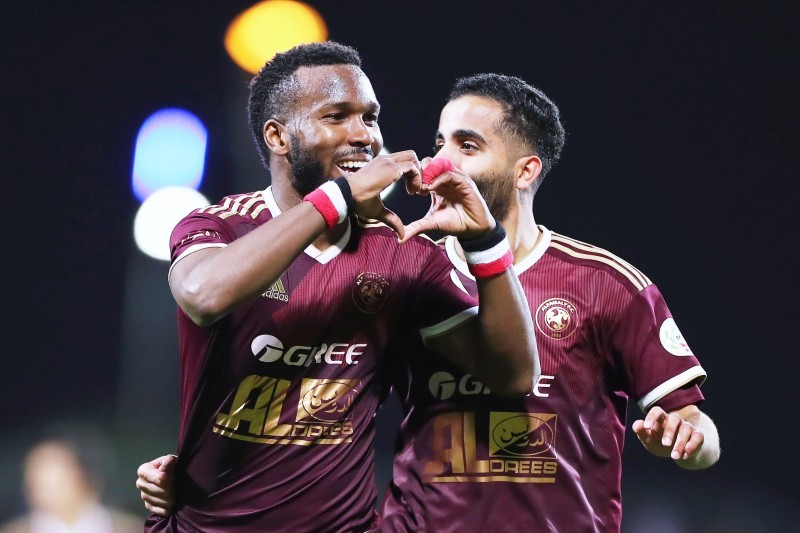 هايلند يحتفل بأحد هدفيه في مرمي الهلال.