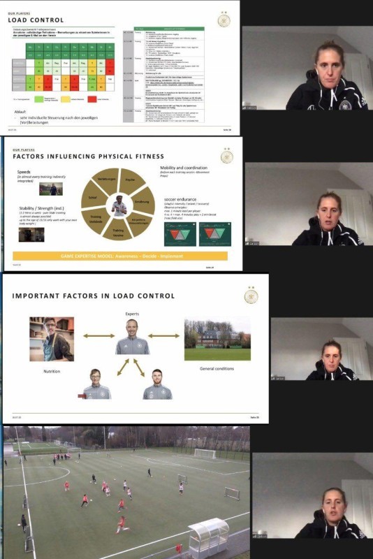 وألقت المحاضرة التي أقيمت «عن بعد» الألمانية بريتا كارلسون مساعدة مدربة المنتخب الألماني، منسقة التطوير بالاتحاد الألماني للفئات السنية النسائية، الحاصلة على شهادة المحترفين في تدريب كرة القدم الأوروبية.