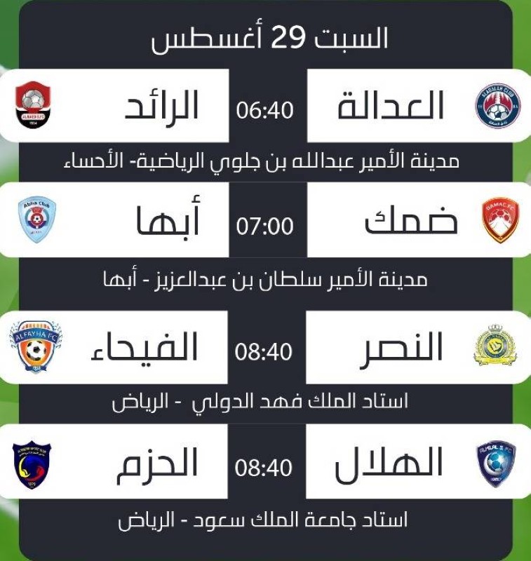 ينتظر عشاق الزعيم الأزرق فريقهم الهلال للقب دوري المحترفين من خلال مواجهته الليلة (السبت) أمام ضيفه الحزم عند الساعة 8:40م على إستاد جامعة الملك سعود بالرياض، كما يستضيف وصيفه النصر فريق الفيحاء في التوقيت ذاته وعلى إستاد الملك فهد الدولي بالرياض، كما يحل الرائد ضيفاً ثقيلاً على العدالة وذلك عند الساعة 6:40م على إستاد مدينة الأمير عبدالله بن جلوي بالأحساء، وفي ديربي عسير ينتظر ضمك لقاء تحديد المصير أمام جاره أبها وذلك عند تمام الساعة السابعة مساءً على إستاد مدينة الأمير سلطان بن عبدالعزيز الرياضية بالمحالة، وتأتي هذه اللقاءات ضمن لقاءات الجولة 28 لدوري كأس الأمير محمد بن سلمان للمحترفين.