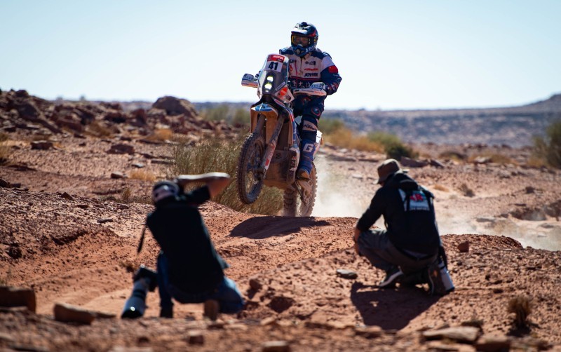 وقال بيترهانسل بعد وصوله خط النهاية: «بالتأكيد كانت هذه المرحلة معقدة حقًا. رأينا منذ البداية أن اليوم سيكون طويلاً، لذلك قررنا ألا نضغط بقوة طوال الوقت وأن نركّز على المحافظة على الإطارات ودقة الملاحة. وفي النهاية نجحنا في تخطي كارلوس (ساينز) وكذلك ناصر (العطية). تجاوزنا (العطية) مرتين لأنه تعرّض لانثقاب. لقد كانت مرحلة من داكار بكل ما تعنيه الكلمة، وتشبه إلى حد ما مررنا به في الماضي في أفريقيا، إذ لم يكن الأمر يتعلق بالسرعة فحسب، بل كان أيضاً مسألةً إستراتيجية من أجل تكييف السرعة مع طبيعة المسارات».وشهدت فئة الدراجات النارية ثلاثة انسحابات في مرحلة اليوم، إذ تعرّض الأسترالي توبي برايس لإصابة في ذراعه وكتفه اليسرى، وتم نقله جواً إلى مستشفى تبوك للحصول على الرعاية الطبية اللازمة، لينسحب من السباق ويفقد مركزه الثاني في الترتيب العام. كما تعطل محرك الدرّاج روس برانش من نوع «ياماها» في تكرار لما حصل في مرحلة الأمس لزميله في الفريق فرانكو كايمي، لينسحب البوتسواني من مرحلة اليوم. ومن ناحيةٍ أخرى انسحب الأرجنتيني لوسيانو بينافيديس بعد اجتيازه 242 كيلومتراً من المرحلة الخاصة بسبب حادثة أدت إلى إصابته في كتفه ونُقِل على إثرها بمروحية إلى مستشفى تبوك للاطمئنان على حالته.