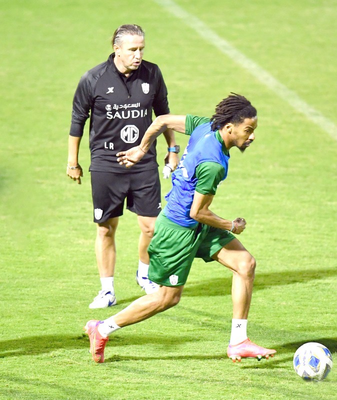 لاعب الأهلي سلمان المؤشر يطبق جملة تكتيكية وسط متابعة ريجيكامب.