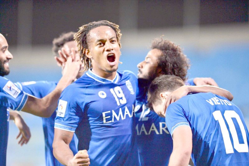 فرحة لاعبي الهلال بالانتصار.