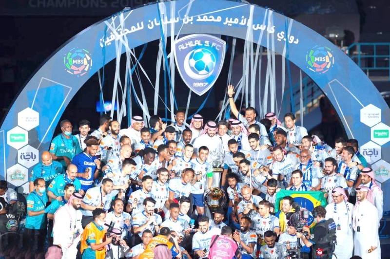 فرحة لاعبي الهلال بتحقيق الدوري الموسم الماضي. (مواقع التواصل)