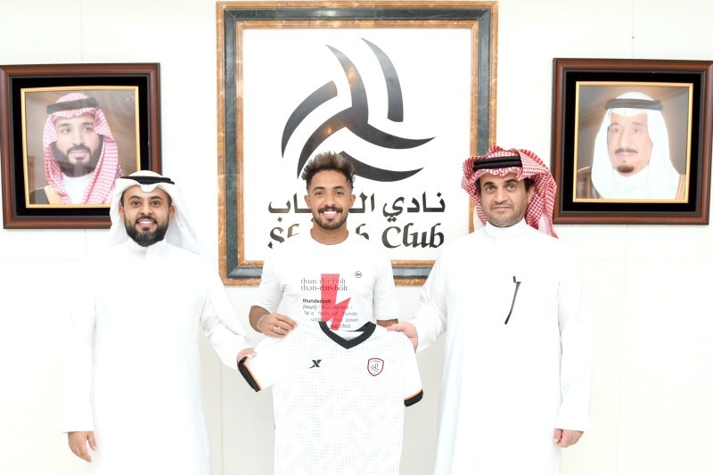 باهبري رفقة خالد البلطان أثناء تقديمه رسمياً بقميص الليث. (نادي الشباب)
