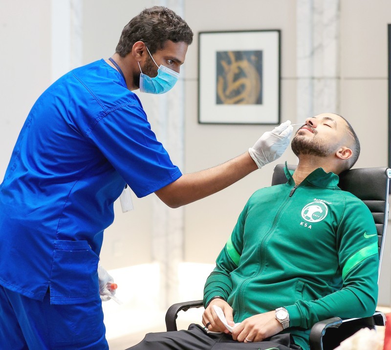 خضع لاعبو الأخضر لفحص (كوفيد-19) من أجل التأكد من سلامتهم فور التحاقهم بالمعسكر أمس (السبت).