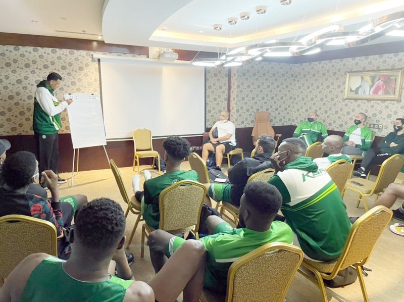 مدرب المنتخب علي السنحني في شرح فني للاعبين.