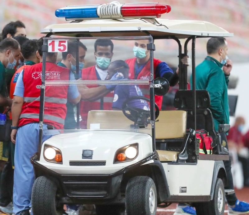 خرج وليد عبدالله محمولاً على السيارة الطبية بعد تعرضه لإصابة قوية في الرأس. (تصوير: عبدالغني بشير)