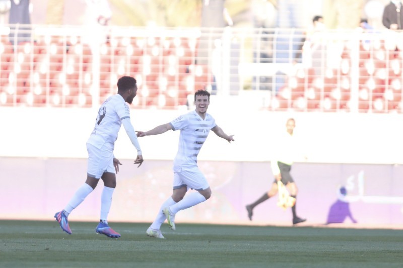 جمال باجندوح محتفلا بهدفه في شباك الباطن.
