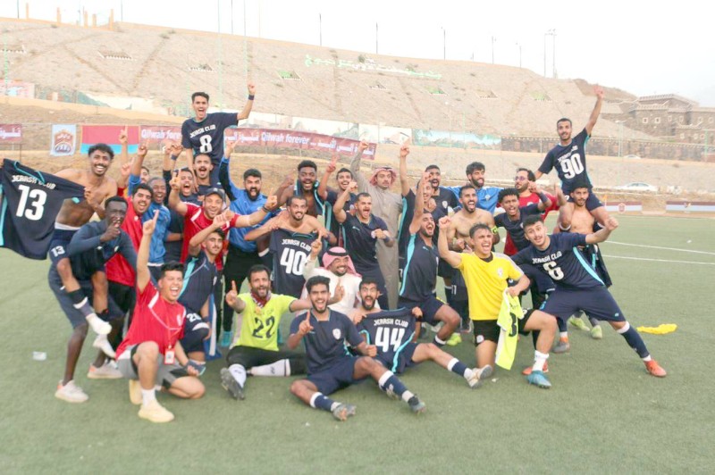 فرحة لاعبي جرش بالصعود لدوري الثانية.