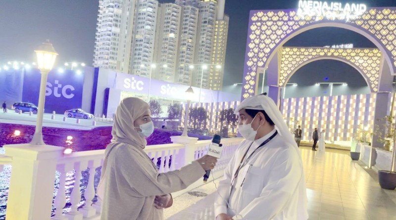 رجاء الله السلمي يتحدث للزميلة أمل السعيد.