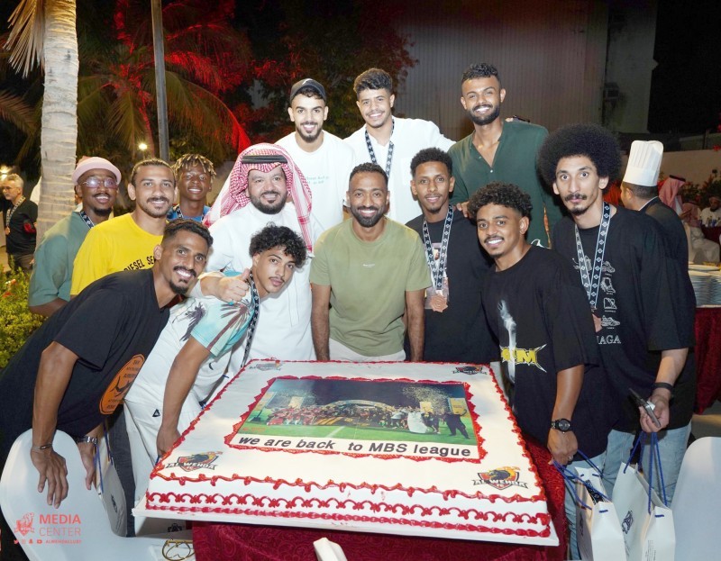 فرحة إداريي ولاعبي نادي الوحدة بالصعود لدوري المحترفين.