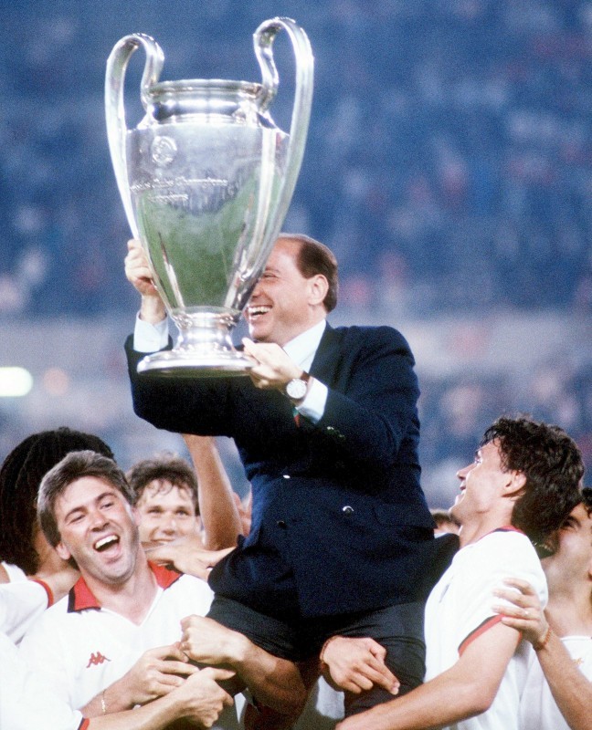 بيرلسكوني سجل اسمه كأكثر رئيس في تاريخ كرة القدم يحقق بطولات رسمية، بيرلسكوني صنع ميلان التاريخي مع أريغو ساكي، فابيو كابيللو وكارلو أنشيلوتي وحمل ميلان كأفضل نادٍ في العالم من 1987 إلى عام 2007.